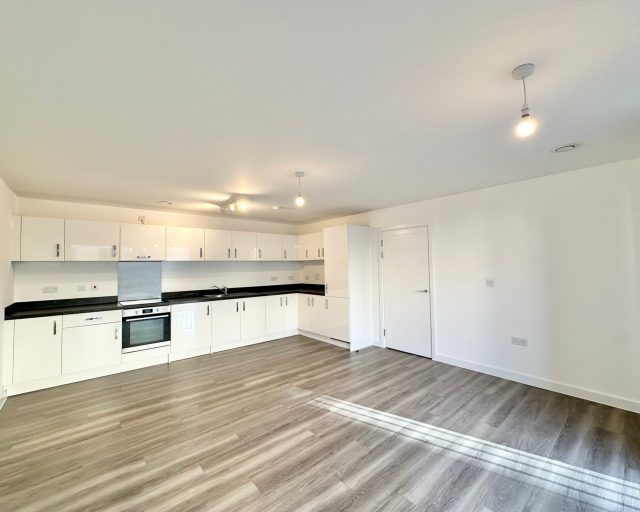 In short the property comprises of entrance hall, storage cupboard, bedroom one with en suite and fitted wardrobes, second double bedroom, family bathroom and open plane kitchen/ living area with access to balcony.