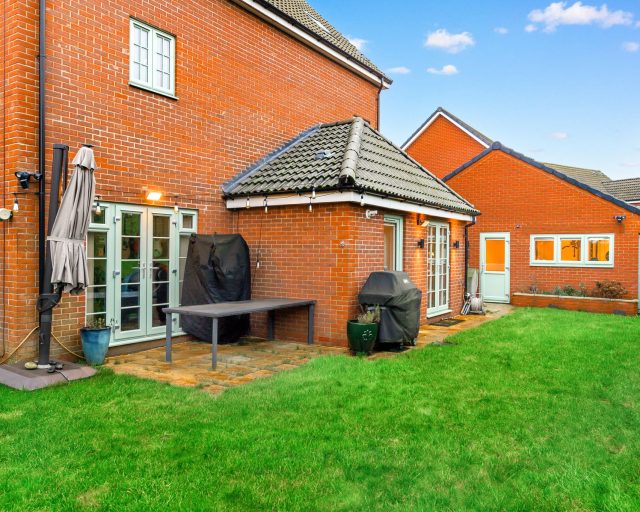 The second floor offers a further landing leading to bedroom three, bedroom four, and a main family bathroom. Externally, the property enjoys a generous rear garden predominantly laid to lawn, complemented by a landscaped tree line providing a high degree of privacy. An additional outdoor BBQ preparation / kitchen area makes this an ideal space for entertaining. To the front are attractive shrub and plant borders, with a driveway to the side providing off-road parking.