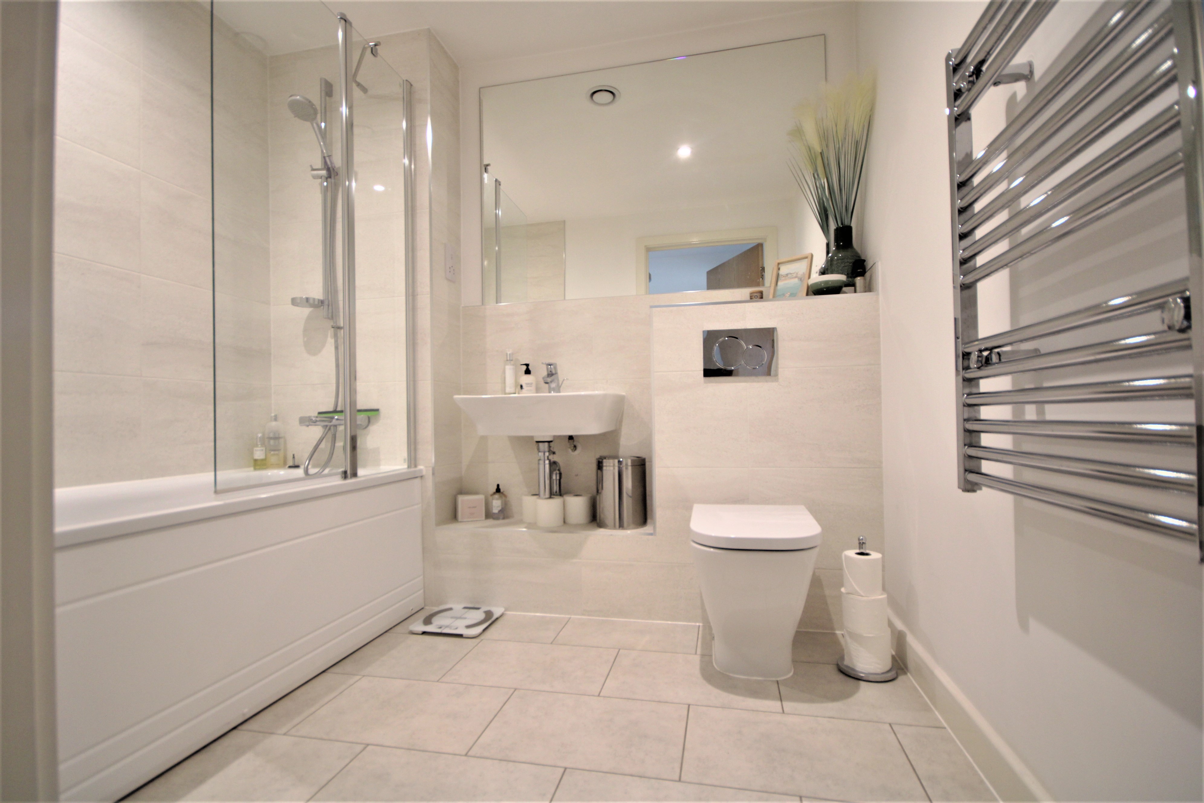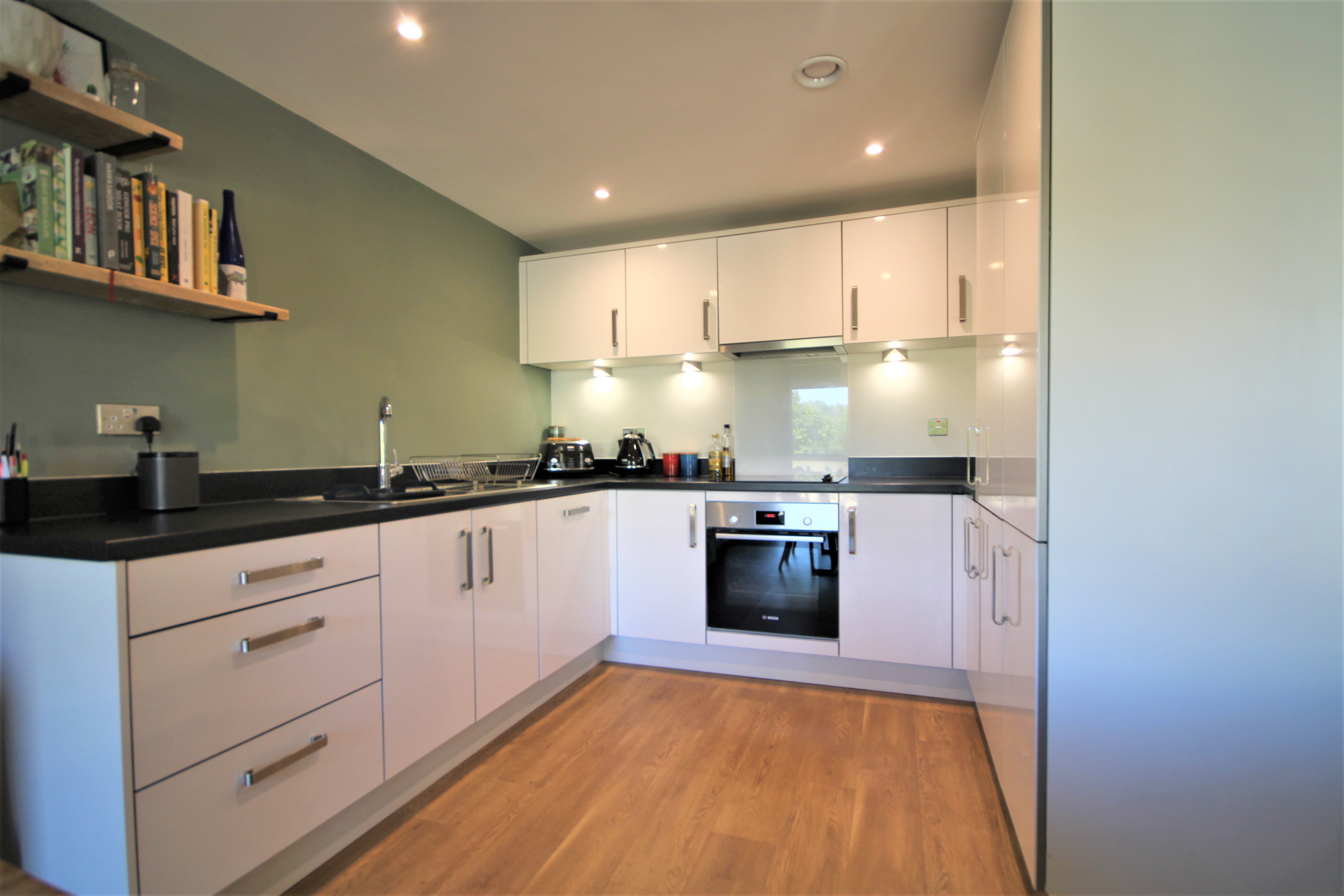 Both the bathrooms have been upgraded to a high spec , chrome fitted switches. The Kitchen also benefits from having all integrated white goods.