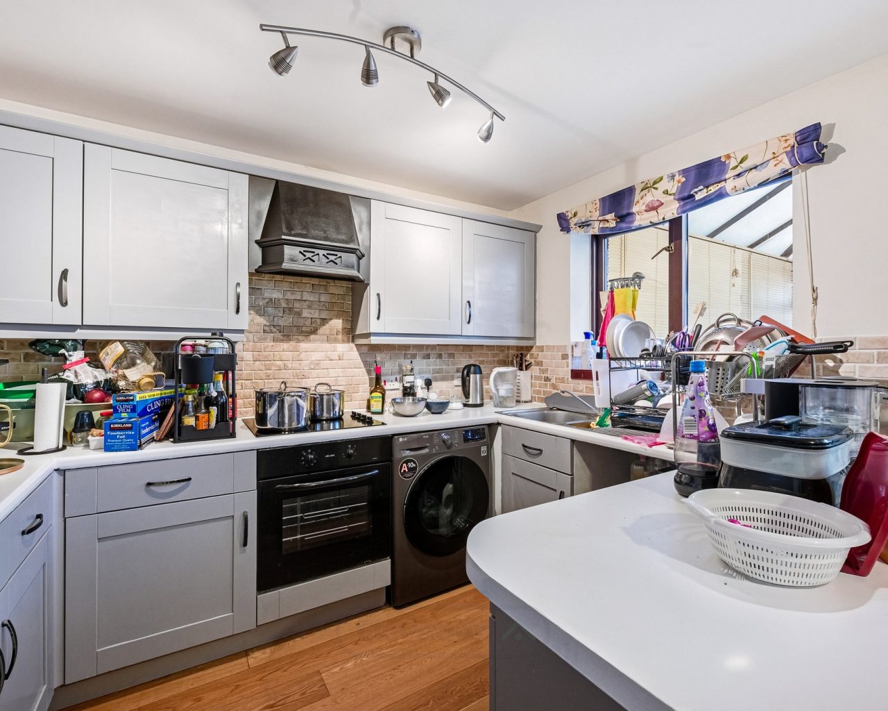 To the rear of the property is the stylish kitchen/diner, thoughtfully designed for both everyday living and social occasions. The kitchen features a breakfast bar, ample worktop and storage space, and selected integrated appliances including an oven and hob, creating a functional yet sociable heart of the home. The dining area comfortably accommodates a family dining table, making it ideal for hosting guests or enjoying family meals.