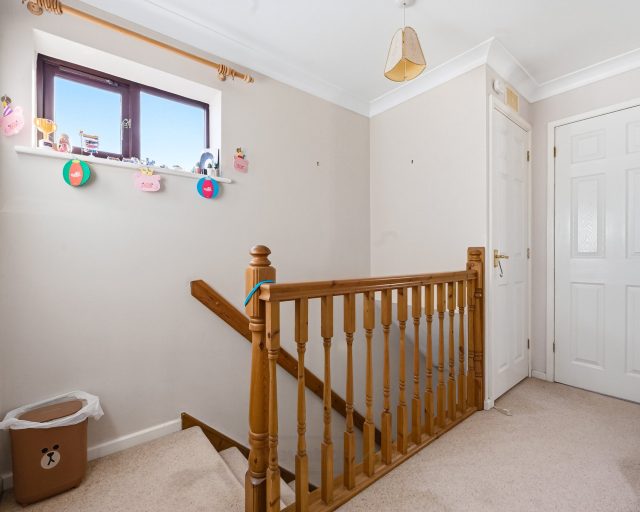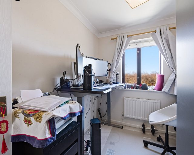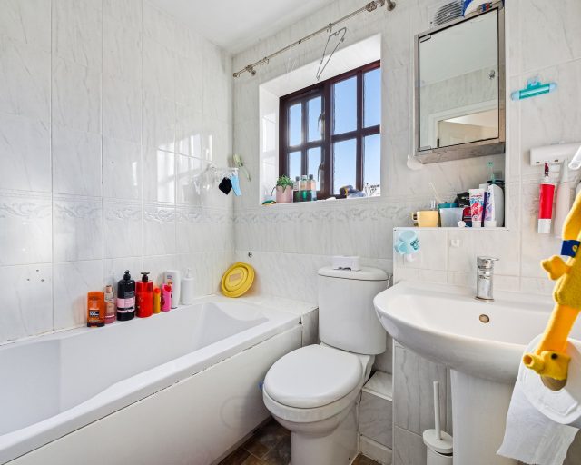 Upstairs, the first floor continues to impress with three well-proportioned bedrooms. Bedroom one is a generous double, offering a peaceful retreat with ample space for wardrobes and additional furniture. Bedroom two is also a comfortable double, making it ideal for family members or guests. The third bedroom, while more compact, is thoughtfully arranged and highly versatile, lending itself perfectly to use as a home office, nursery, dressing room, or child’s bedroom. Completing the first floor is the three-piece family bathroom, fitted with a bath, wash basin, and WC.