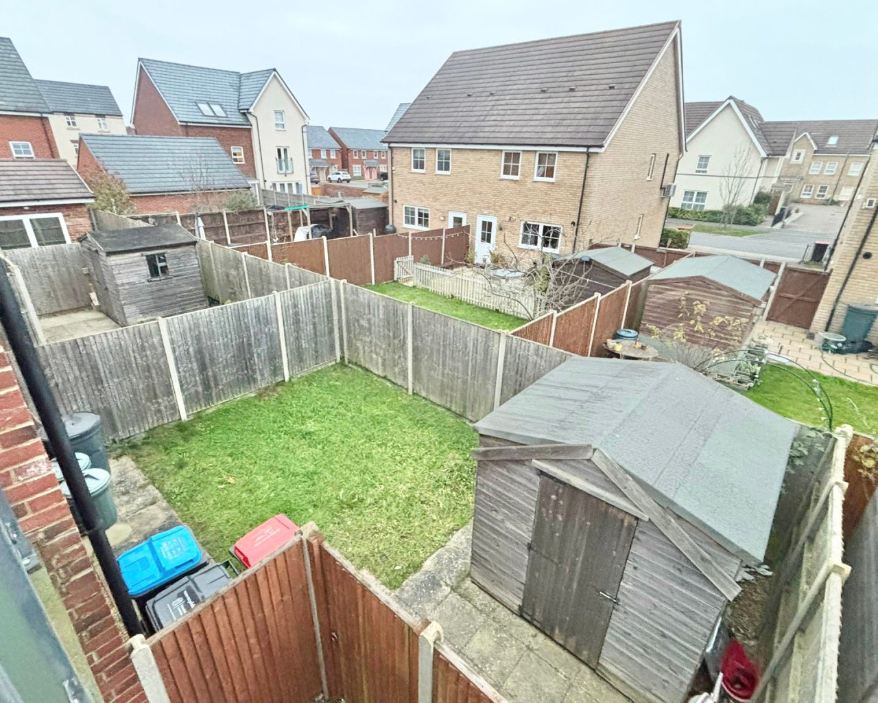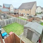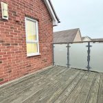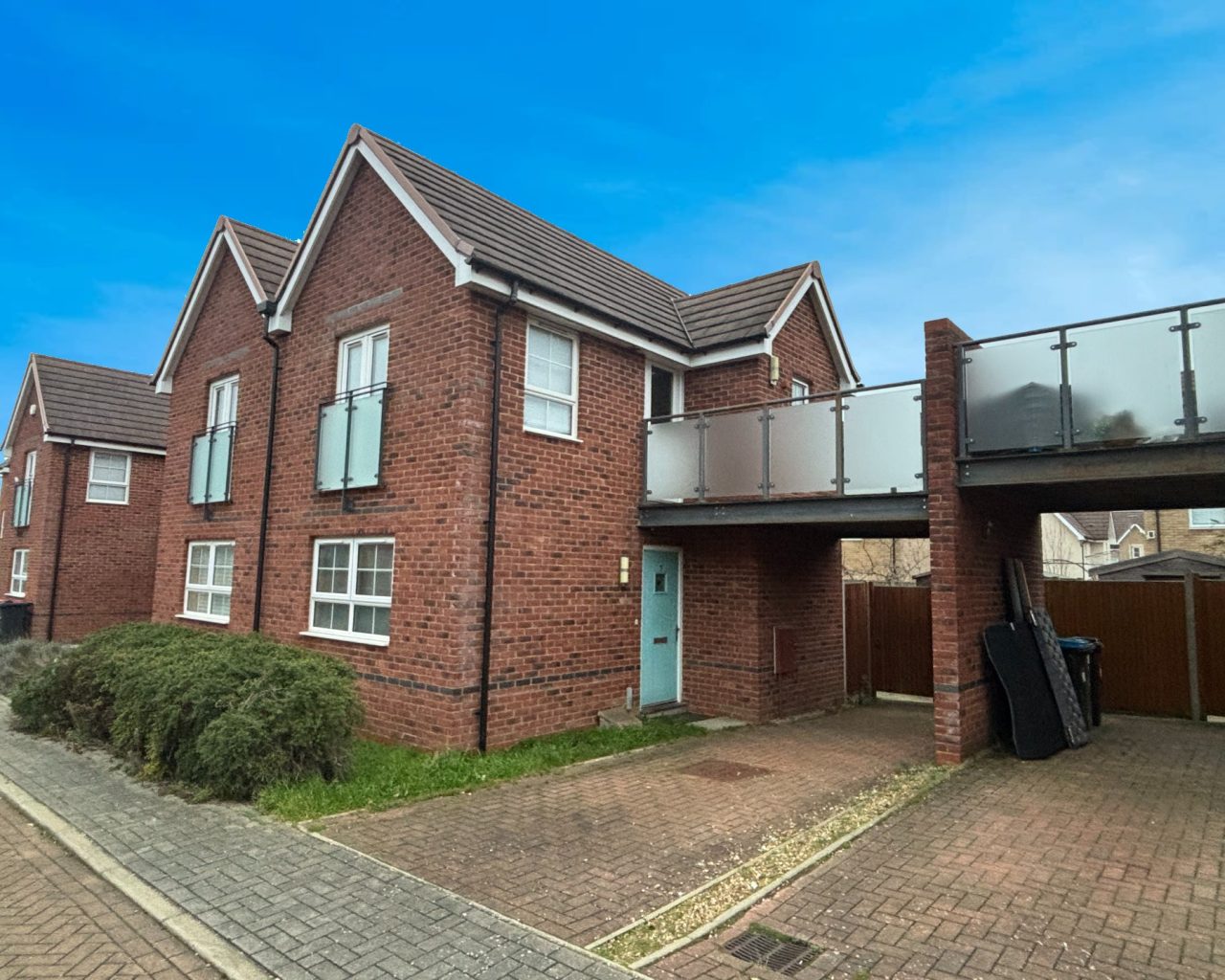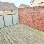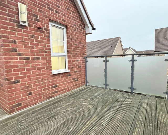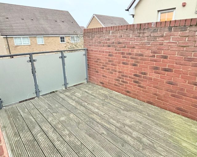 A balcony, enclosed private rear garden, and driveway for two small cars.