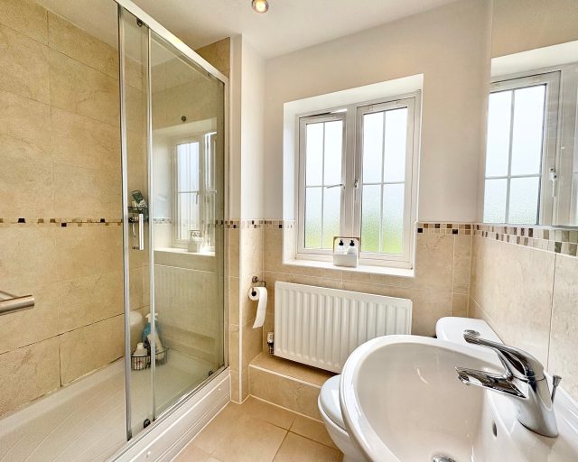 The kitchen’s sleek, modern aesthetic is complemented by generous proportions and a thoughtfully considered layout. A dual-aspect lounge provides a separate, elegantly appointed reception area—perfect for quiet relaxation—while a well-positioned ground-floor WC enhances day-to-day convenience. The first floor accommodates four generously proportioned bedrooms, including a luxurious principal suite complete with a contemporary en-suite shower room.
