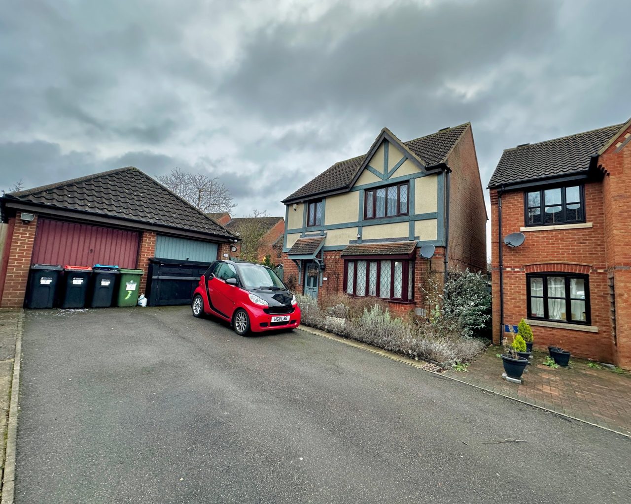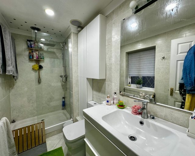 Upstairs, the home offers three well-proportioned bedrooms. The main bedroom benefits from built-in wardrobes and a private en-suite shower room, providing a comfortable and private retreat. Two further bedrooms are served by a modern family bathroom, making this an ideal layout for growing families. Further benefits include a garage and two allocated parking spaces, ensuring ample off-road parking.