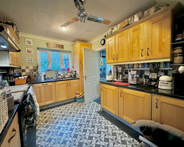 Upon entering the property, you are welcomed into a bright and inviting living room, featuring a charming gas fireplace that creates a warm and cosy focal point — ideal for relaxing evenings. The ground floor also benefits from a convenient downstairs WC, adding practicality for guests and everyday family life. The well-appointed kitchen is fitted with integrated appliances and offers ample storage and workspace, making it both functional and stylish. A handy utility cupboard provides additional storage and space for household essentials.