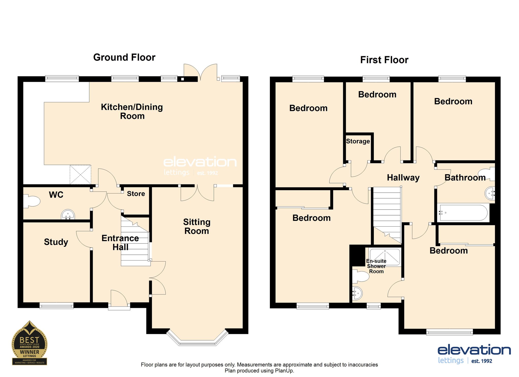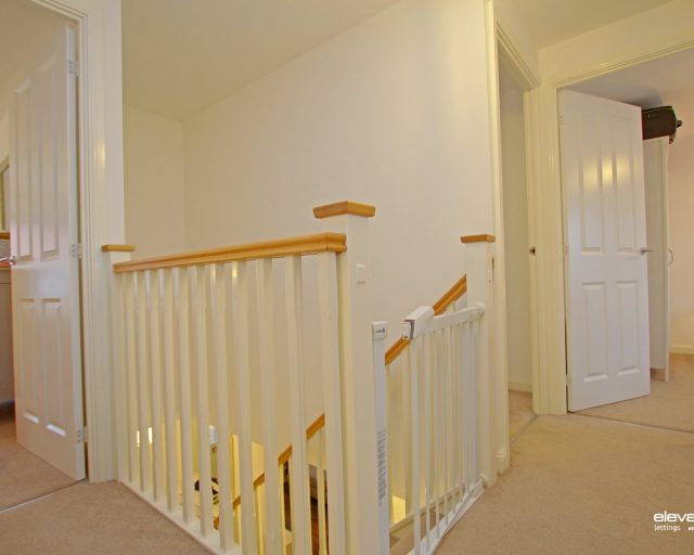 The first-floor landing leads to five well-proportioned bedrooms, offering flexibility for growing families or those needing additional workspace. The principal bedroom benefits from its own en-suite shower room, while the remaining bedrooms are served by a modern family bathroom fitted with a three-piece suite.