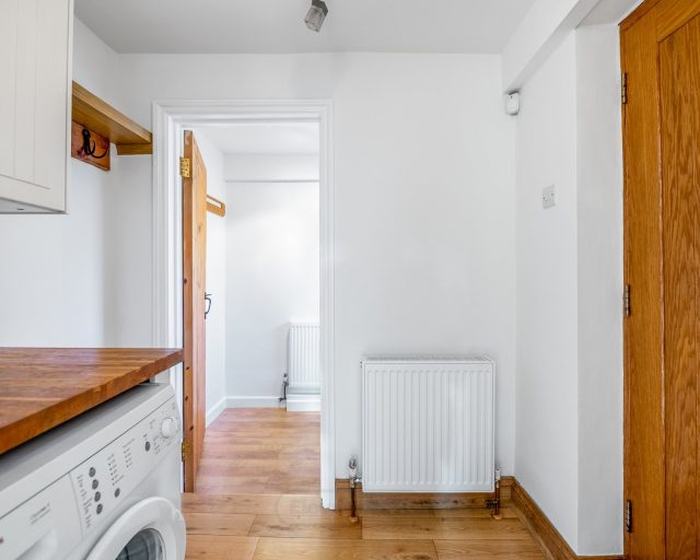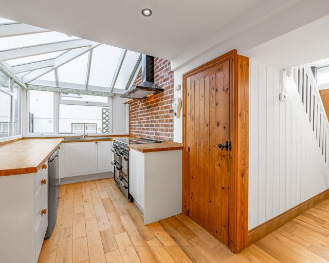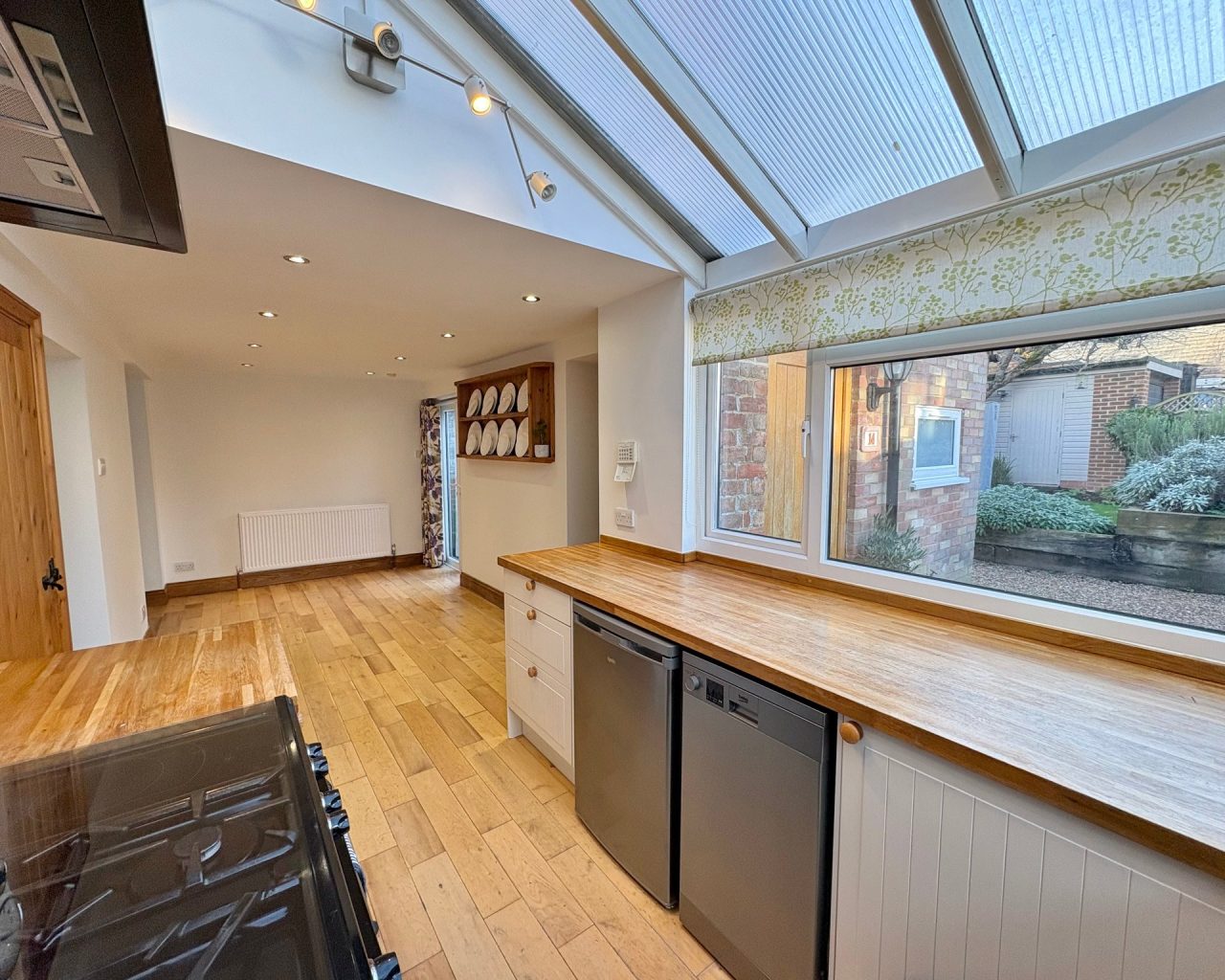 Stepping inside, the entrance hall leads to a cosy lounge featuring a log-burner fireplace with hearth, the perfect spot for relaxing evenings. A separate reception room offers space for home working, while the generous dining area flows seamlessly into an orangery-style cottage kitchen, creating a wonderful setting for family meals and entertaining.